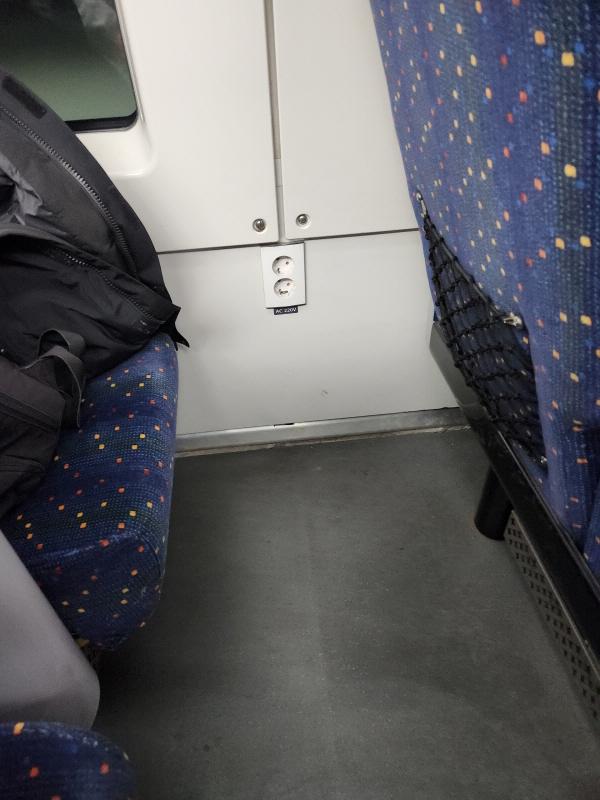 헌데, 아래 그림과 같이 창 측 좌석 옆에 2개의 220V 콘센트가 있어서, 통로 쪽에 있으면 사용이 불편할 수 없습니다.