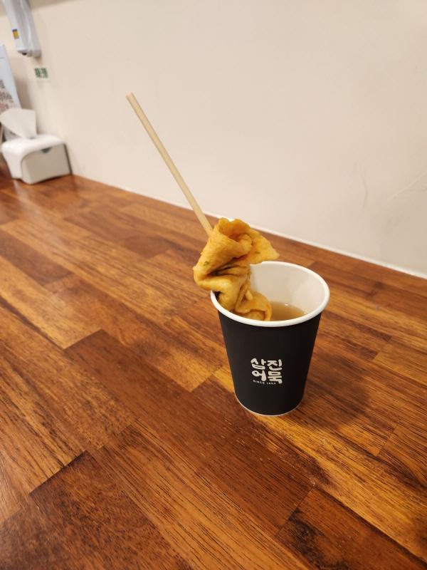 저는 삼진어묵 가서 어묵 하나 먹었습니다.