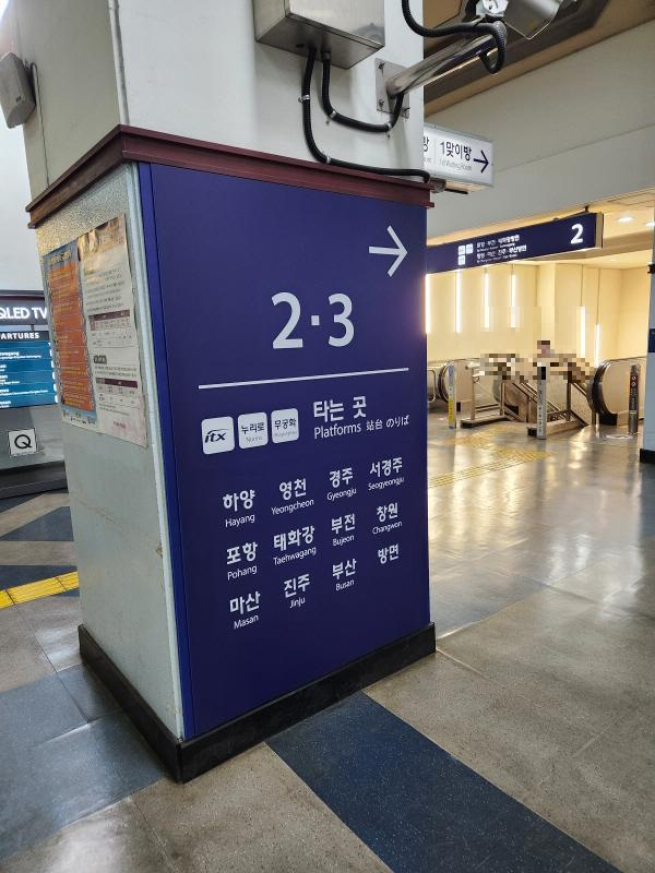 포항, 서경주, 경주, 부산, 부전, 마산, 진주 => 2, 3번 플랫폼
