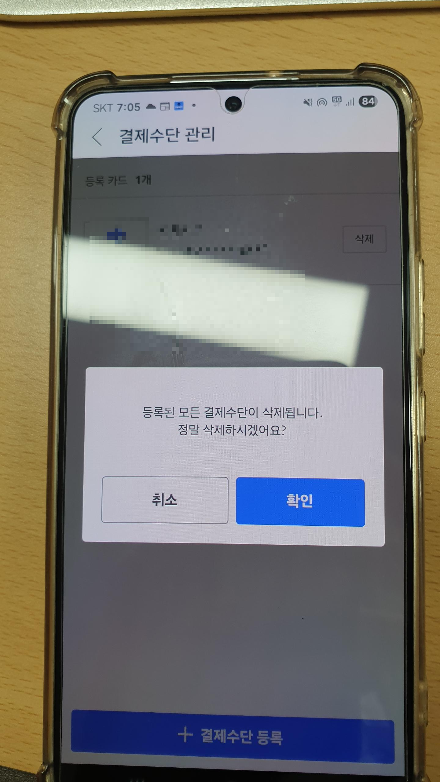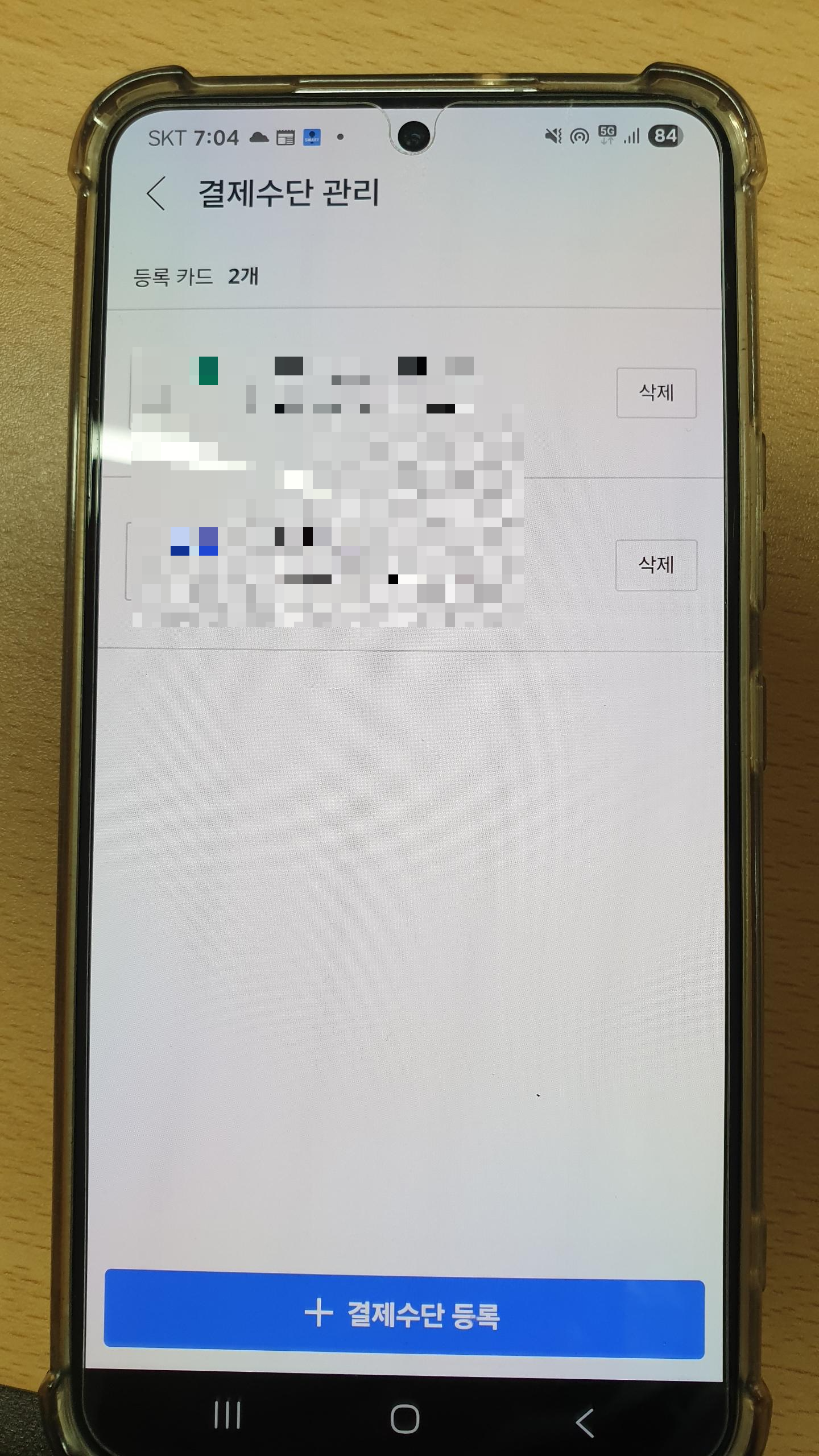 실제 제 핸드폰 앱에서 결제 카드 삭제하는 것을 순차적으로 찍어서 안내해드리겠습니다.